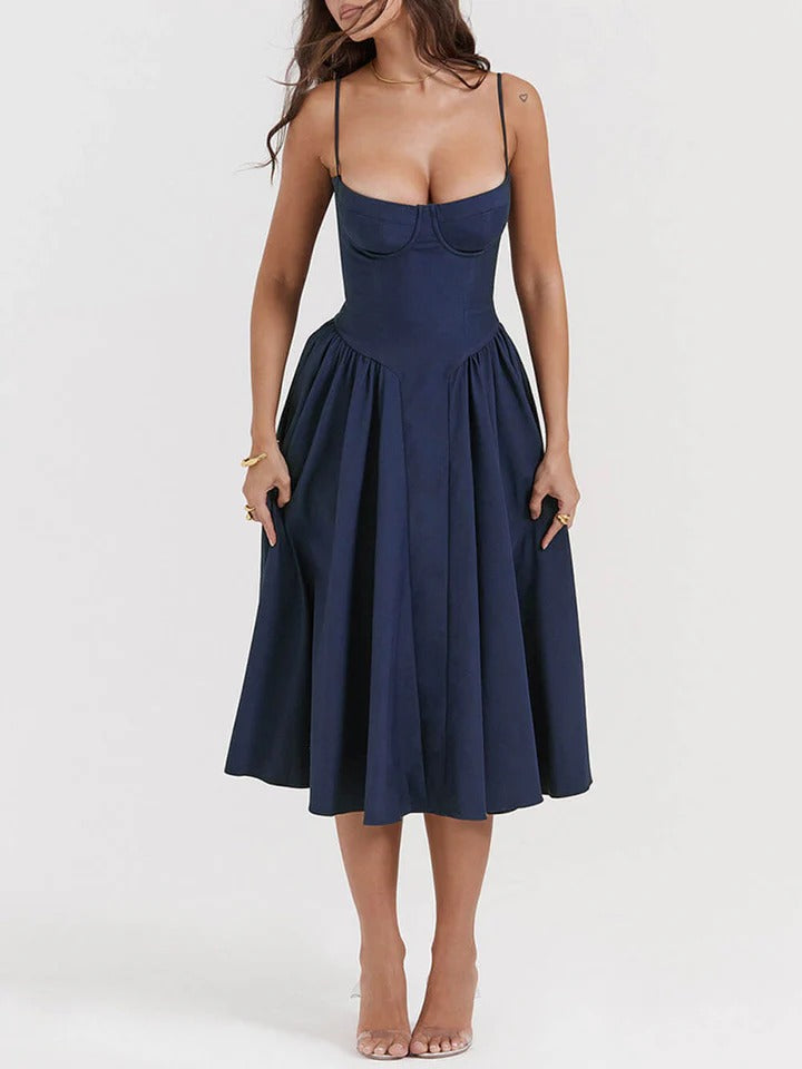 La CAMILLA Maxi Dress incarne une élégance intemporelle avec une silhouette sculptée et féminine. Son corsage structuré met délicatement la taille en valeur, tandis que la jupe ample crée un mouvement fluide et raffiné à chaque pas.